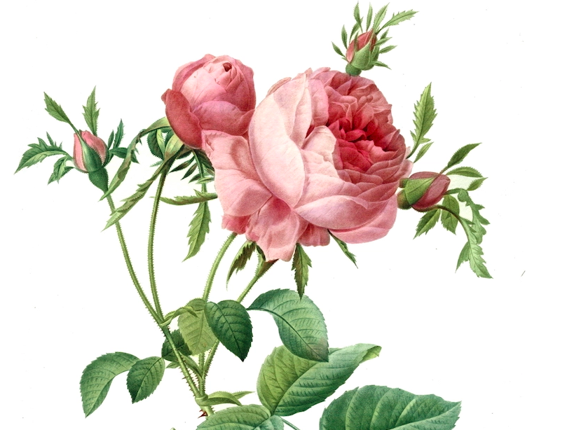 “Rosa centifolia foliacea,” 1824 by Pierre-Joseph Redouté. (Photo: Wikimedia Commons)